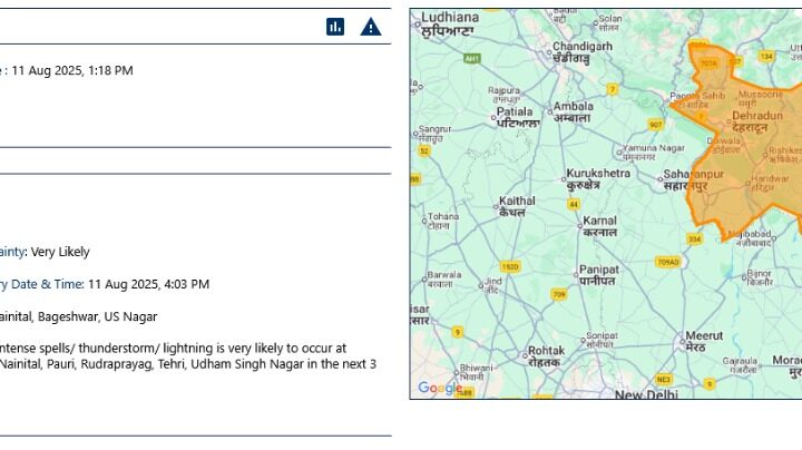 नैनीताल: मौसम विभाग, देहरादून ने 11 अगस्त की दोपहर को नैनीताल जिले के लिए “रेड अलर्ट” जारी...