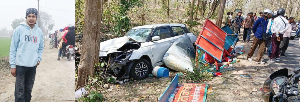 जानकारी के अनुसार, उधम सिंह नगर के बरहैनी (जबरान) निवासी पंजा सिंह का 18 वर्षीय बेटा अभिषेक सिंह नयागांव चेक पोस्ट के पास बेल के जूस का ठेला लगाता था। सोमवार दोपहर करीब पौने दो बजे वह अपने ठेले पर ग्राहकों का इंतजार कर रहा था, तभी कालाढूंगी की ओर से आ रही तेज रफ्तार स्विफ्ट कार ने सामने चल रही गाड़ी को ओवरटेक करने की कोशिश में नियंत्रण खो दिया।