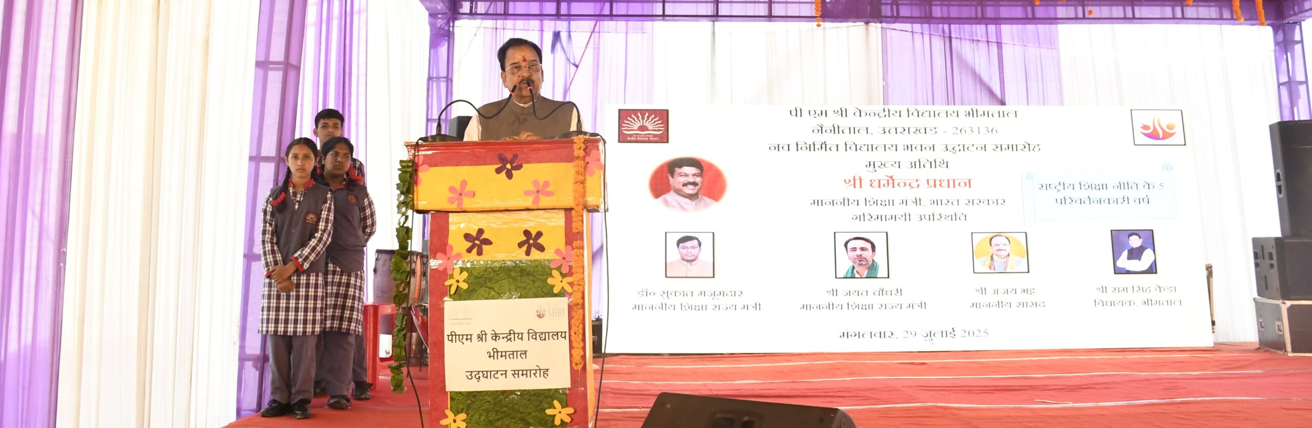 दिल्ली में केंद्रीय शिक्षा मंत्री धर्मेंद्र प्रधान ने देशभर में बने नए केंद्रीय विद्यालय भवनों का वर्चुअल उद्घाटन किया, जिसमें भीमताल का यह स्कूल भी शामिल था। इस दौरान उन्होंने शिक्षा के क्षेत्र में हो रहे बदलावों और राष्ट्रीय शिक्षा नीति की भूमिका पर भी प्रकाश डाला।