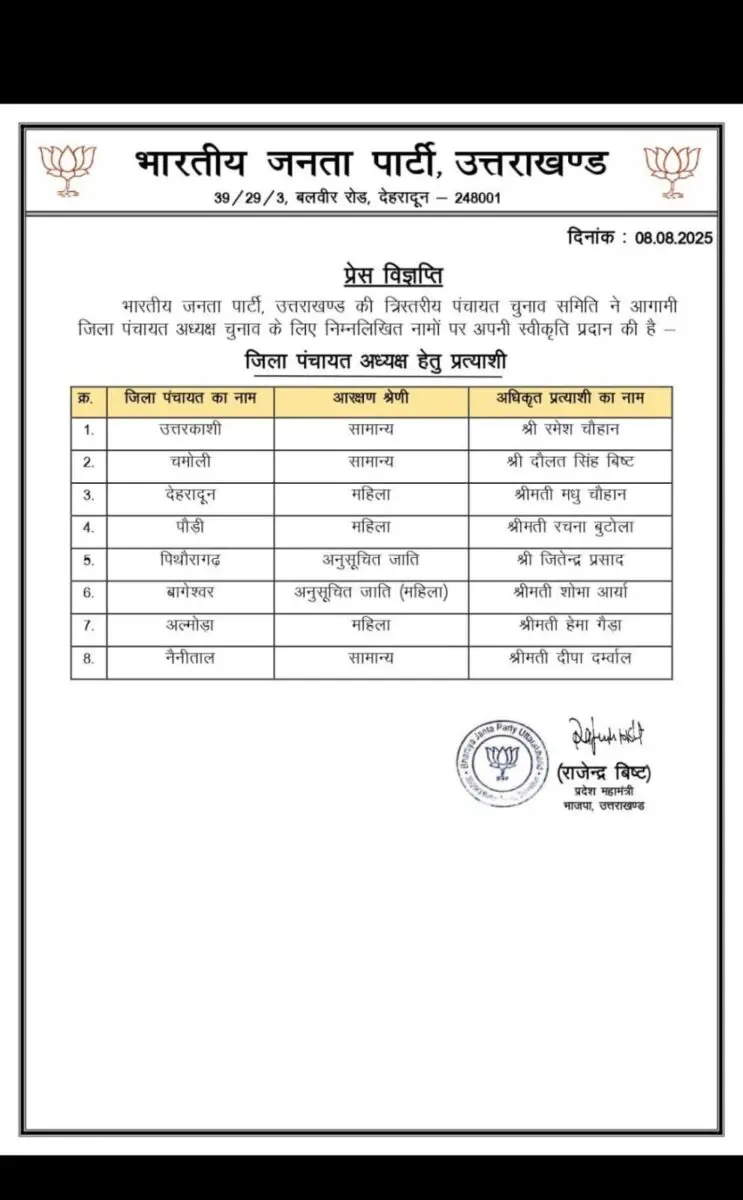 उत्तराखंड देहरादून नैनीताल भाजपा ने जारी की 8 जिला पंचायत अध्यक्ष प्रत्याशियों की लिस्ट नैनीताल से दीपा दरमवाल को बनाया प्रत्याशी Ankita Mehra August 8, 2025 भाजपा ने जारी की 8 जिला पंचायत अध्यक्ष प्रत्याशियों की लिस्ट नैनीताल से दीपा दरमवाल को बनाया प्रत्याशी Post navigation Previous ऑपरेशन कालनेमि में सफलता: साधु के भेष में ढोंगी बाबा गिरफ्तार, नाबालिग से दुष्कर्म का आरोपी निकलाNext हल्द्वानी: आयुक्त दीपक रावत की जनसुनवाई, सुशीला तिवारी मे आउटसोर्स कर्मचारियों के वेतन को लेकर दिये आदेश Related Stories मुख्यमंत्री ने जमरानी बाँध परियोजना का किया स्थलीय निरीक्षण, परियोजना सिचाई व पेयजल आपूर्ति के लिए मील का पत्थर सिद्ध होगी: सीएम धामी उत्तराखंड नैनीताल मुख्यमंत्री ने जमरानी बाँध परियोजना का किया स्थलीय निरीक्षण, परियोजना सिचाई व पेयजल आपूर्ति के लिए मील का पत्थर सिद्ध होगी: सीएम धामी February 4, 2026 हल्द्वानी में सीएम धामी की पत्रकार वार्ता, तराई-भाभर के विकास को नई रफ्तार : सीएम धामी उत्तराखंड नैनीताल हल्द्वानी में सीएम धामी की पत्रकार वार्ता, तराई-भाभर के विकास को नई रफ्तार : सीएम धामी February 4, 2026 हल्द्वानी: तबीयत खराब रहने से चल रही थी आर्थिक तंगी, नशे में भाई ने की भाई की हत्या, आरोपी गिरफ्तार उत्तराखंड नैनीताल हल्द्वानी: तबीयत खराब रहने से चल रही थी आर्थिक तंगी, नशे में भाई ने की भाई की हत्या, आरोपी गिरफ्तार February 4, 2026