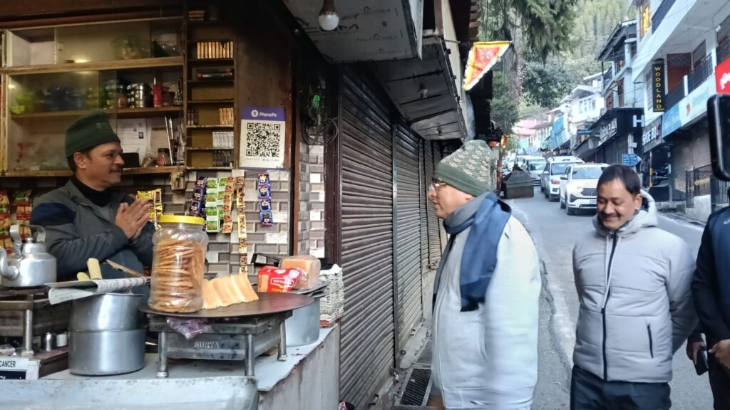 नैनीताल: मुख्यमंत्री पुष्कर सिंह धामी ने बुधवार सुबह नैनीताल में मॉर्निंग वॉक के दौरान स्थानीय लोगों, पर्यटकों और स्कूली बच्चों से मुलाकात की। पूरे दौरान माहौल आत्मीय रहा और लोगों ने मुख्यमंत्री का गर्मजोशी से स्वागत किया। वॉक के दौरान सीएम धामी स्थानीय चाय विक्रेता भरत की दुकान पर भी रुके और वहाँ की चाय का स्वाद लिया।