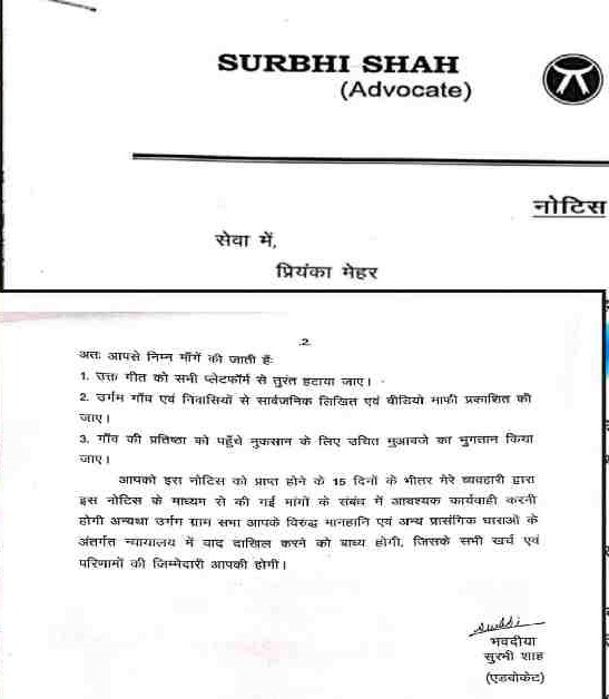 उधर, गीत में गायक की भूमिका निभा रहे युवक ने सोशल मीडिया पर यह आपत्ति जताई है कि प्रियंका मेहर का निजी मोबाइल नंबर सार्वजनिक किया गया, जो गलत है। उन्होंने इस पर अलग से नोटिस जारी करने की बात भी कही है।