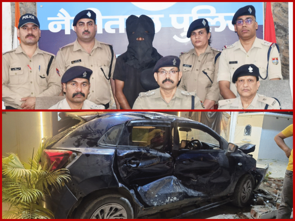 नैनीताल: जिले के कालाढूंगी क्षेत्र से मंगलवार देर रात का एक सनसनीखेज घटना सामने आयी है। जहाँ एक ट्रेक्टर चालक ने सड़क किनारे खड़ी कार को निशाना बनाते हुए कार पर इतने बार टक्कर मारी की कार चकनाचूर हो गयी थी। घटना पास के एक होटल में लगे एक cctv में कैद हो गई। घटना को गभीरता से लेते हुए पुलिस ने आरोपी को गिराफ्तार कर लिया व उसके पास से तमंचा व घटना में उपयोग हुआ ट्रैक्टर भी बरामद हुआ है।