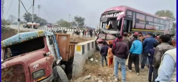 बताया जा रहा की बस में लगभग 10 यात्री बैठे थे। हादसा डम्पर के अचानक मुड़ने के कारण हुआ।
