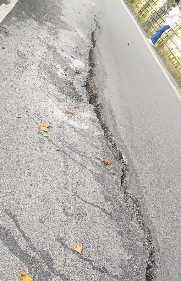 रविवार को सड़क के करीब दस मीटर हिस्से में आधा फीट का धंसाव हो गया। विभाग ने कंक्रीट से दरार को भर तो दिया है, लेकिन सुरक्षा दीवारें खोखली होने के कारण सड़क के और धंसने का खतरा बना हुआ है। दरारें इतनी गहरी हो गई हैं कि वह चारों तरफ से साफ दिखाई दे रही हैं। सुरक्षा को ध्यान में रखते हुए फिलहाल सड़क पर यातायात रोक दिया गया है।