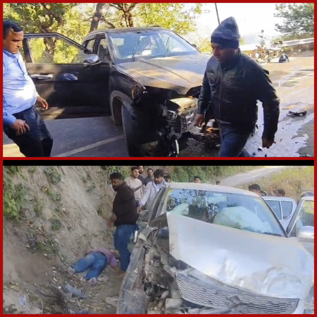 नैनीताल: नैनीताल से कालाढूंगी जाने वाले मार्ग पर रविवार शाम उस समय अफरा-तफरी मच गई, जब बजून मोड़ के पास दो कारें अचानक आमने-सामने भिड़ गईं। खतरनाक मोड़ होने के चलते चालक गाड़ी संभाल नहीं पाया और क्रेटा व स्विफ्ट खतरनाक तरीके से भिड़ गए। हादसे के बाद कारों के परखच्चे हो उड़ गए और, अंदर बैठे छह लोग जख्मी हो गए।