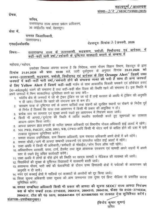 इसी चेतावनी को ध्यान में रखते हुए शासन ने सभी कार्यदायी एजेंसियों को एलर्ट मोड पर रहने निर्देश दिए हैं।