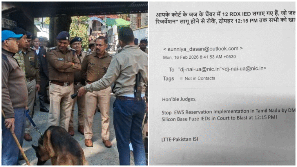 नैनीताल: नैनीताल में सोमवार को उस समय हड़कंप मच गया जब जिला न्यायाधीश के आधिकारिक ई-मेल पर न्यायालय को बम से उड़ाने की धमकी मिलने की सूचना सामने आई। खबर मिलते ही पुलिस प्रशासन हरकत में आ गया और जिले के सभी न्यायालय परिसरों को तत्काल खाली करा दिया गया। जिला एवं सत्र न्यायालय नैनीताल, रामनगर कोर्ट और हल्द्वानी स्थित जजी कोर्ट में एक साथ सघन तलाशी अभियान चलाया गया।
